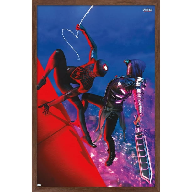 Marvel S Spider Man Miles Morales Fight Wall Poster 22 375 X 34 Framed Walmart Com